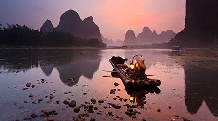 Cormorant fisherman night fishing on the Li River, near Xingping Town, Guangxi province, China