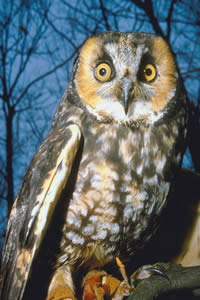 - The sharp curved beak of an owl is perfectly adapted to eating the prey that it captures with its sharp talons. Owls have no teeth, and so their sharp beaks tear off pieces of their prey, and then the owls swallows it whole or feed it to their young.