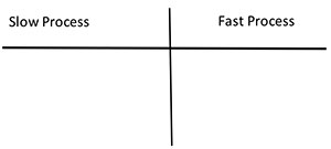 As either slow or fast, categorize some of the different processes that shape the surface of the earth and contribute to the rock cycle. Use these processes: