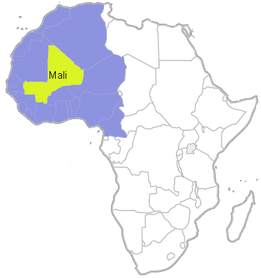 Here is a map of the country of Mali. Can you find Ouelessebougou? Bamako is the capital city of Mali. Bamako is right on the Niger River which runs through Mali. Now let's see if you can remember. Is North America (where we live) close to Africa? What part of Africa is Ouelessebougou in? What country is Ouelessebougou in? Here's the bonus question! What is the name of the capital city of Mali?