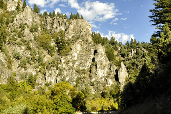 Logan Canyon winds through the Bear River Mountains, a branch of the Wasatch Mountain Range, offering scenic views and recreational opportunities like hiking and fishing.