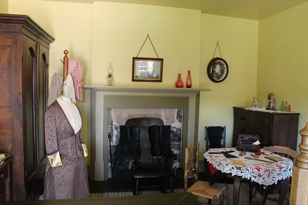 The dining room of Cove Fort Historic Site in Kanosh, Utah, is furnished to reflect the style and function of a 19th-century pioneer home.