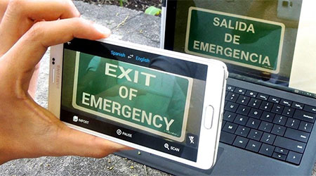 - Hold your device up to whatever you would like to translate, and you’ll see the translation in AR.