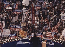 For eight to ten weeks between the Convention and Election Day, the Presidential and Vice-Presidential candidates campaign. The candidates state their thoughts on the party platform and make promises on behalf of the government. They also make speeches and appear at rallies and debates to present their philosophies and views on current issues.
