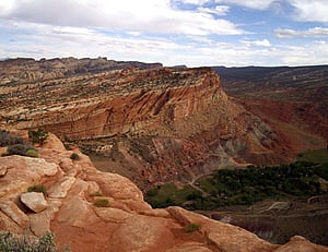- Capitol Gorge - a narrow steep-walled canyon that extends for several miles southwards, and a pleasant foot trail runs along its base and passes some ancient Indian petroglyphs.